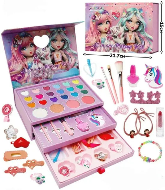 Adorable Doll 3 Layers Makeup & Jewellery Set For Kids