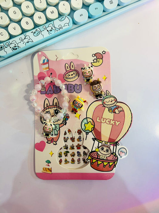 Labubu Diy Rings Braclets And Nail Stickers Set