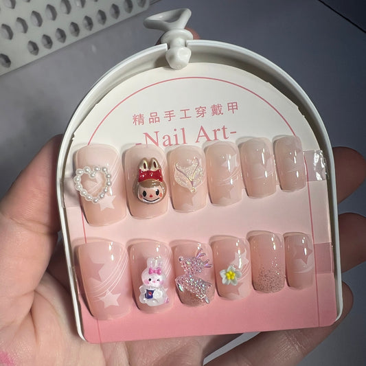 Labubu Kids Nails Pack | 3d Charms | 12 Nails