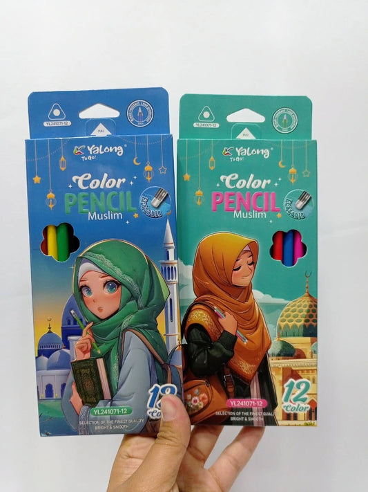 Yalong Muslim Color Pencils – 12 Shades with Erasers