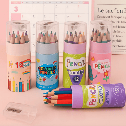 12 Mini Colour Pencils Jar With Sharpener