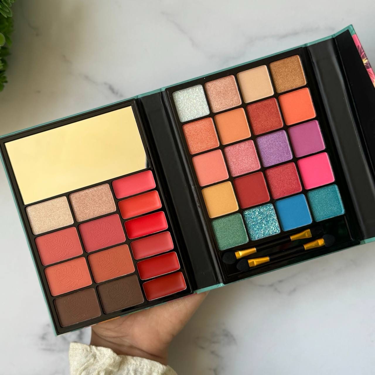 The Anylady Colorful Tropical All In One Makeup Palette boasts a big size and travel-friendly design, making it a perfect choice for busy individuals on-the-go. With a variety of funky colors, including eyeshadows, highlighters, and lip glosses, this palette offers endless possibilities for creating stunning looks. Available at Bachun Ki Duniya's online store in Pakistan.