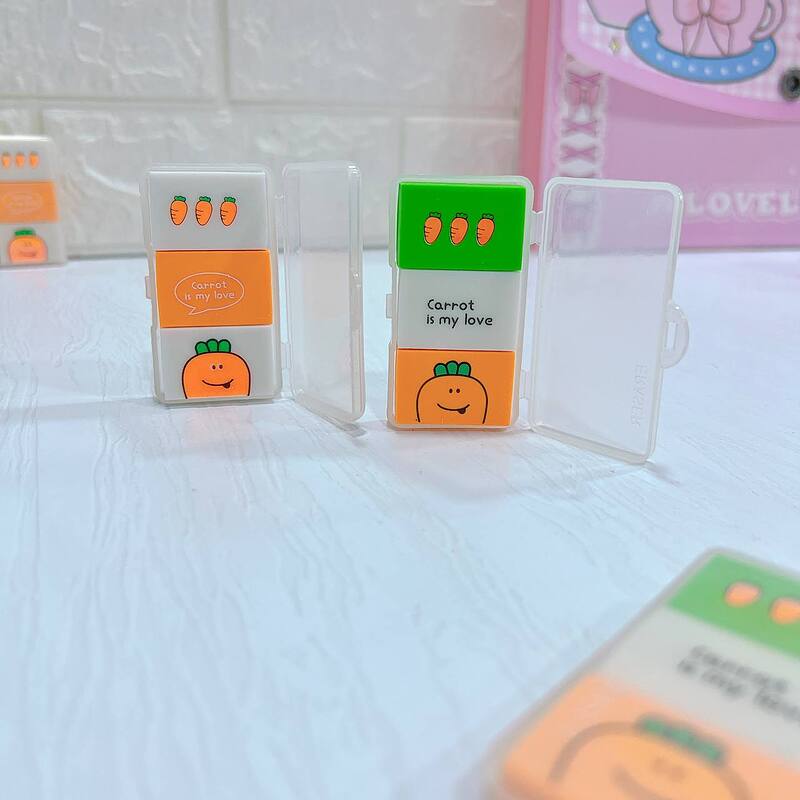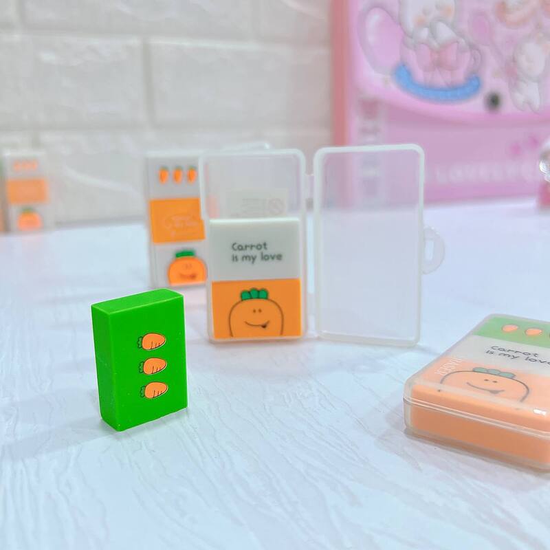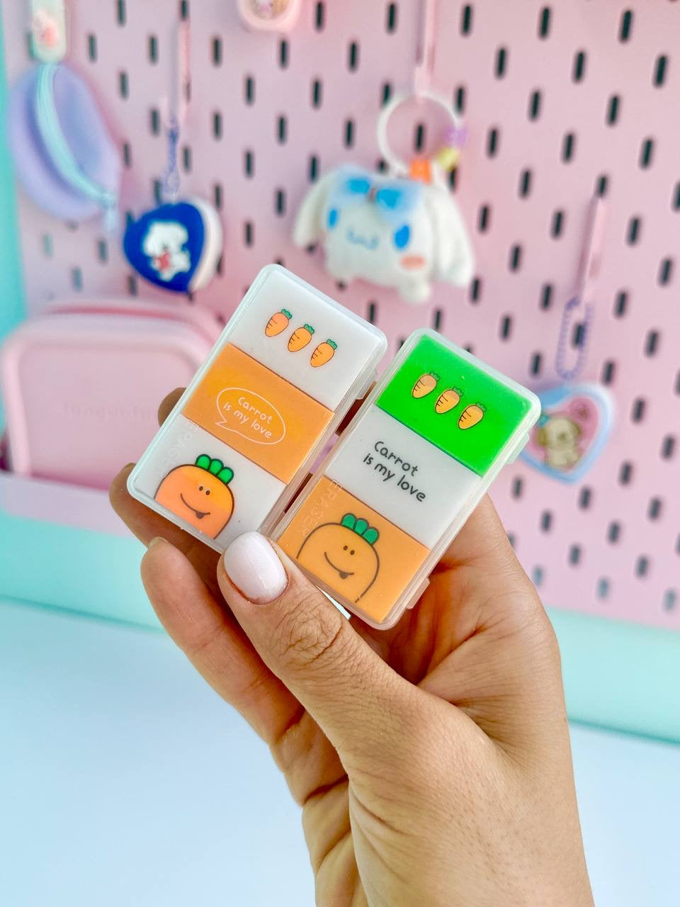 This Carrot Pencil Eraser Set of 3 is a must-have for any stationary collection. Made from high-quality plastic, these three erasers come in a convenient organizer box, ensuring that they are always within reach. Keep your mistakes to a minimum with these durable and practical erasers.