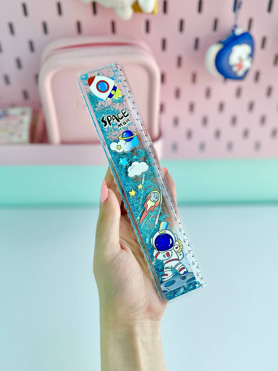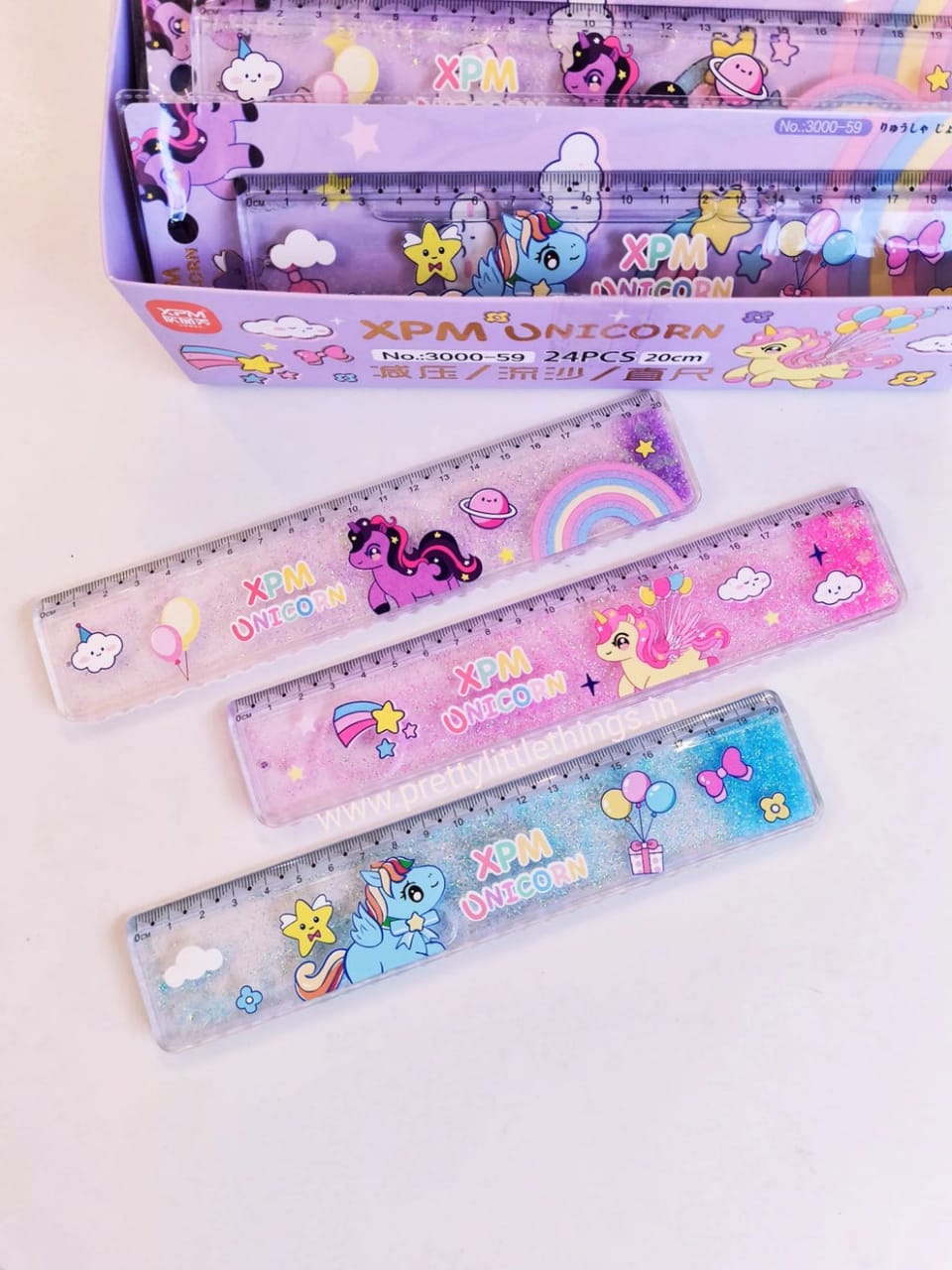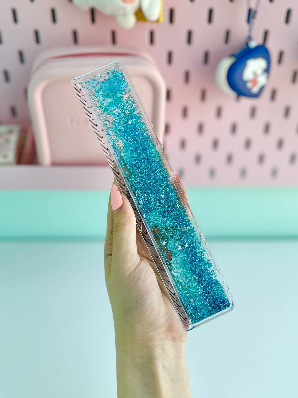 Mesmerizing measurement: Glittery water-filled ruler scales add a touch of sparkle to every inch.