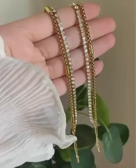 Elevate your style with our Double Chain Gold Look Stainless Steel Bracelet. Made of high-quality stainless steel, this jewelry piece is both durable and stylish. Whether you're dressing up or keeping it casual, this adjustable bracelet is the perfect addition to any outfit. Get yours today at bachunkiduniya.