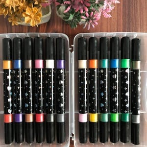 Enhance your creativity with the Dual Tip 24 Colour Glitter Marker. These set of 12 Shimmery markers are perfect for adding shimmer and sparkle to your artwork. With 24 vibrant colours and dual tips, you can create unique and dazzling designs. Available at bachunkiduniya for all your creative needs.
