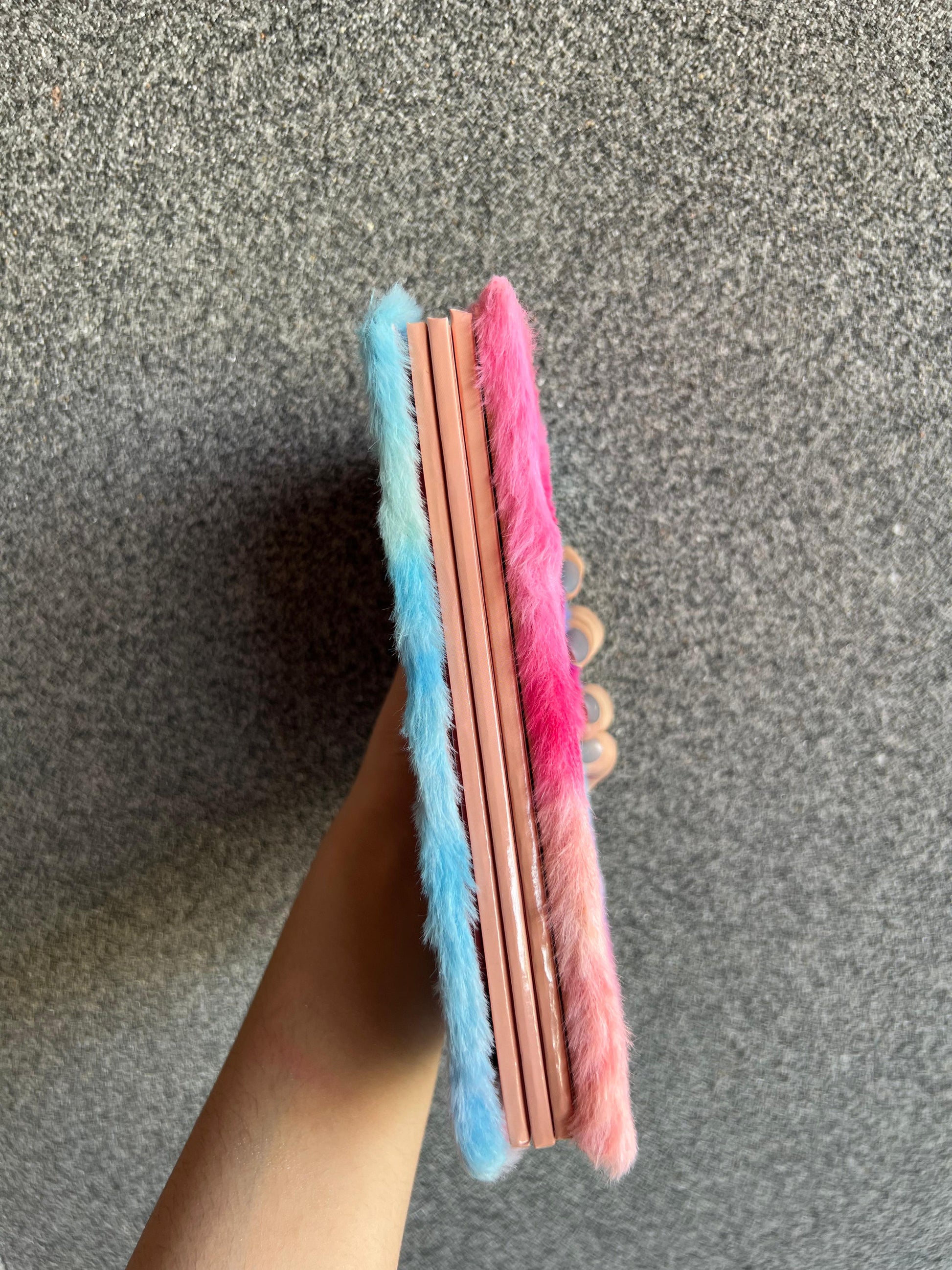 🧸 Plush Furry Cover in pastel blue, pink, and beige options