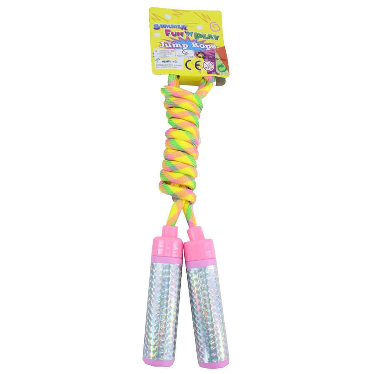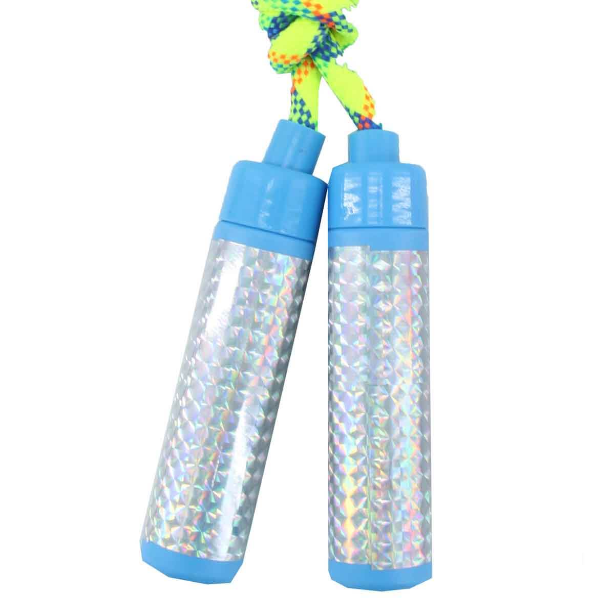 This holographic skipping rope features funky colors that will add a fun and playful touch to your workout routine. Made with quality materials, it is durable and lightweight, making it perfect for cardio workouts. Improve your coordination and burn calories in style with this trendy skipping rope.
