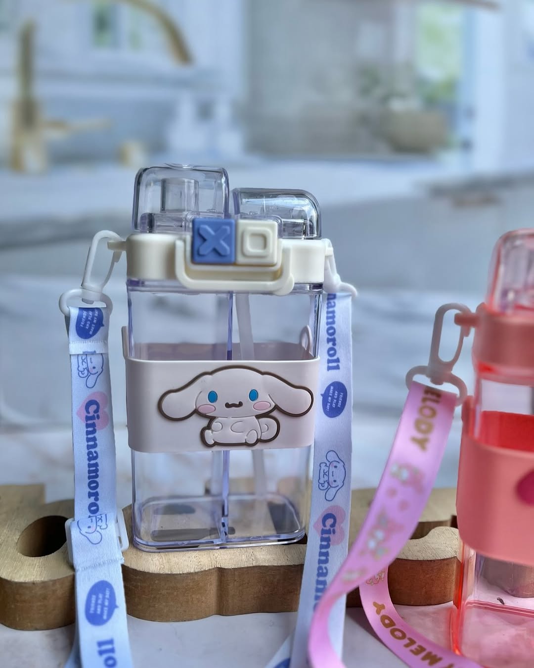This Sanrio Two Way 2 In 1 Drinking Water Bottle provides an efficient solution for carrying two drinks at once. Stay hydrated on-the-go with this versatile bottle, available at Bachun Ki Duniya online store. Made with durable materials, it is a practical and convenient choice for everyday use.