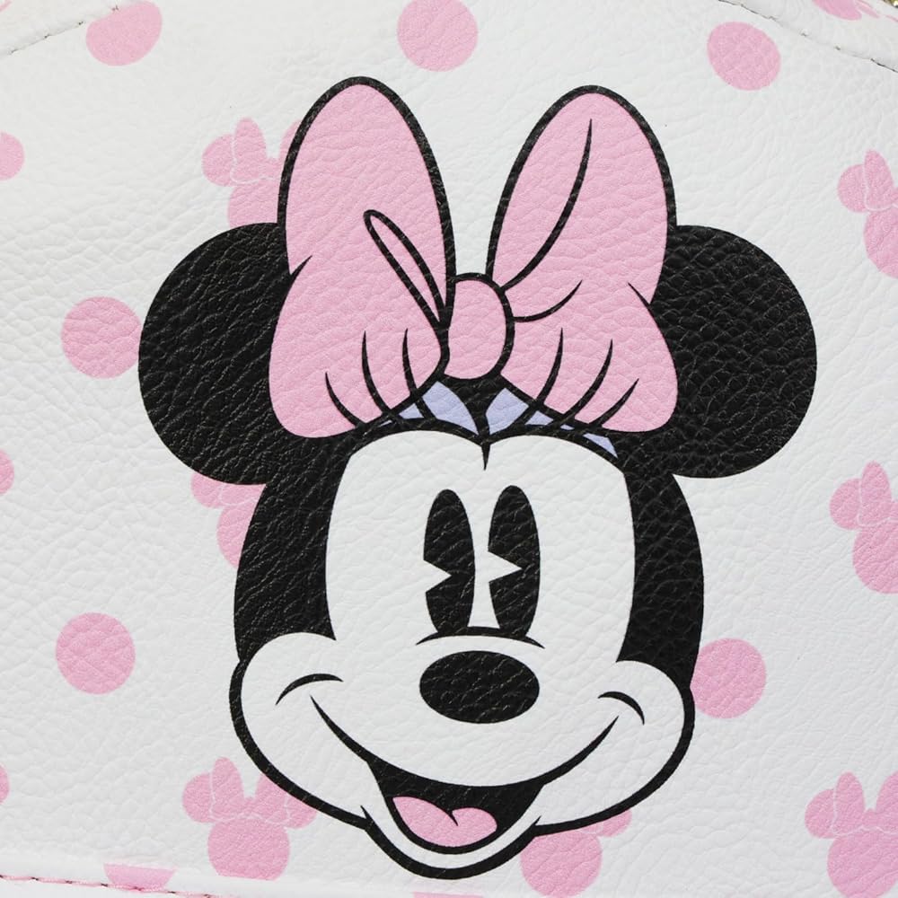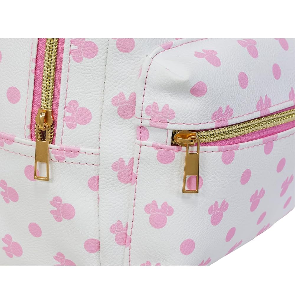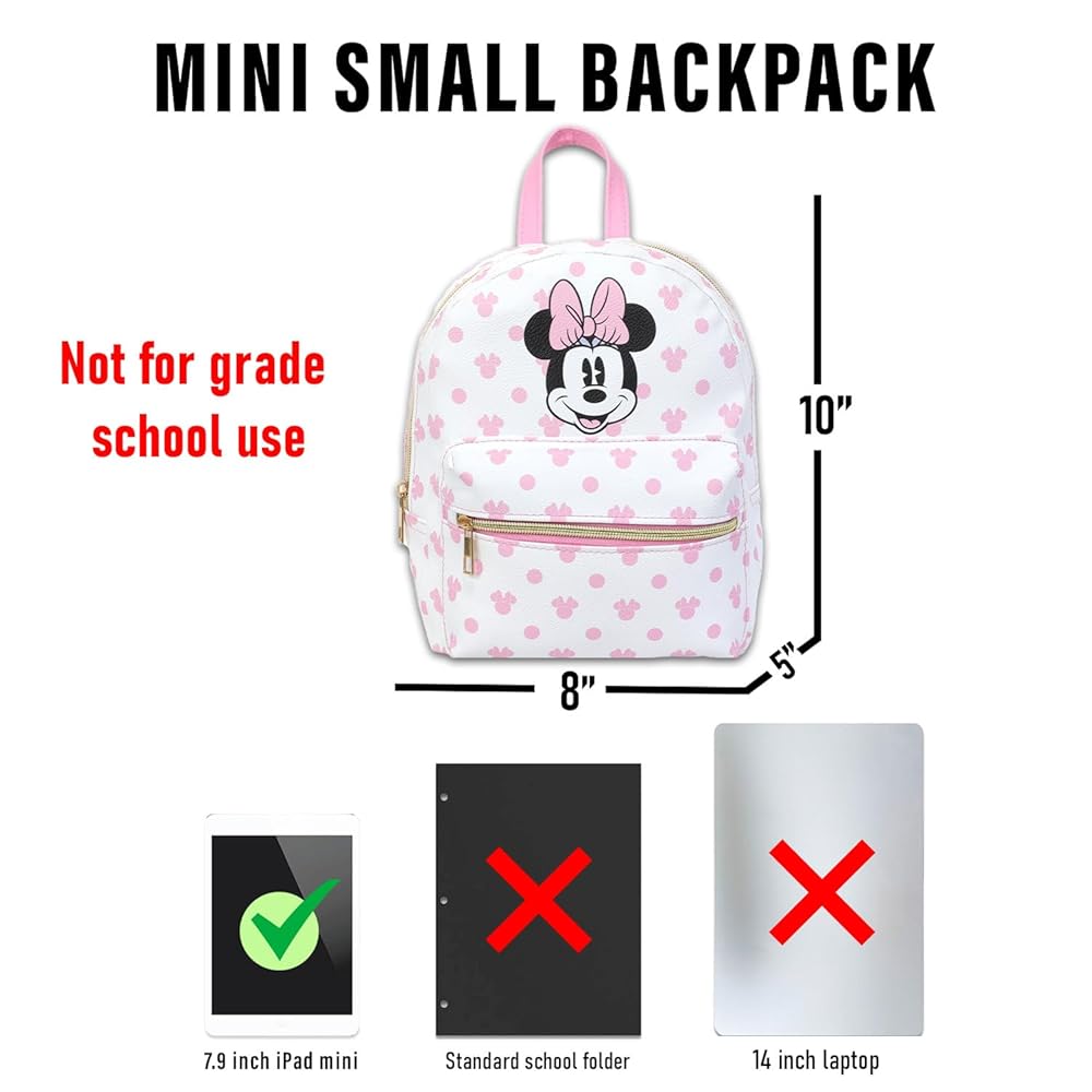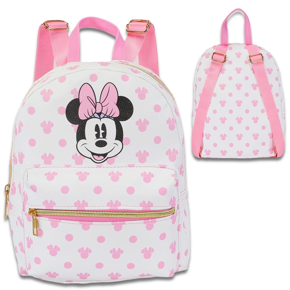 Take on the day with this stylish Minnie Mouse Mini Backpack for Women. The 10” faux leather backpack features adjustable shoulder straps, zip compartment, front pocket, and top loop for hanging. Keep your essentials organized while showing off your love for Minnie Mouse. Perfect for theme parks, vacations, or daily use.