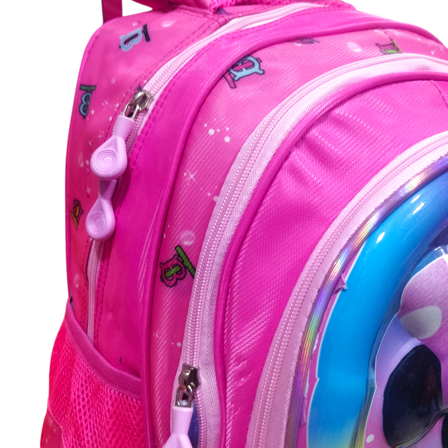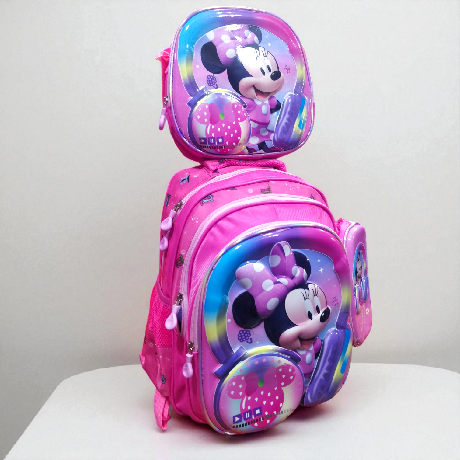 This Minnie Mouse School Bag is expertly crafted using high quality materials, measuring 16 inches. It comes with a matching pencil case and lunch bag, making it the perfect set for any student. Stay organized and stylish with this durable and functional school bag.