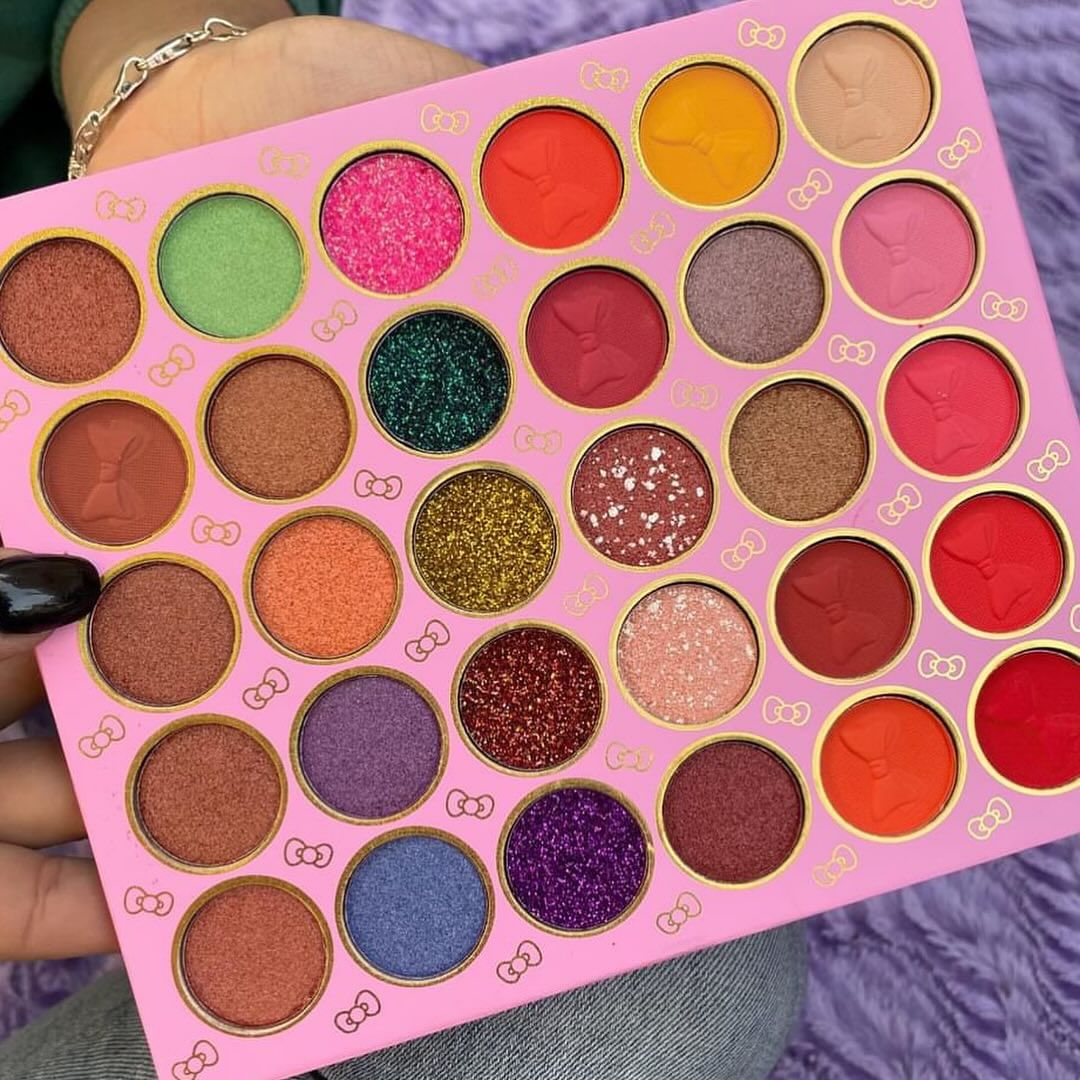 Introducing the Mlundo Sanrio Hello Kitty Eyeshadow Book Palette. This 3-page palette features 72 stunning eyeshadow shades, perfect for achieving any look. From subtle to bold, this palette has it all. A must-have for any makeup lover.
