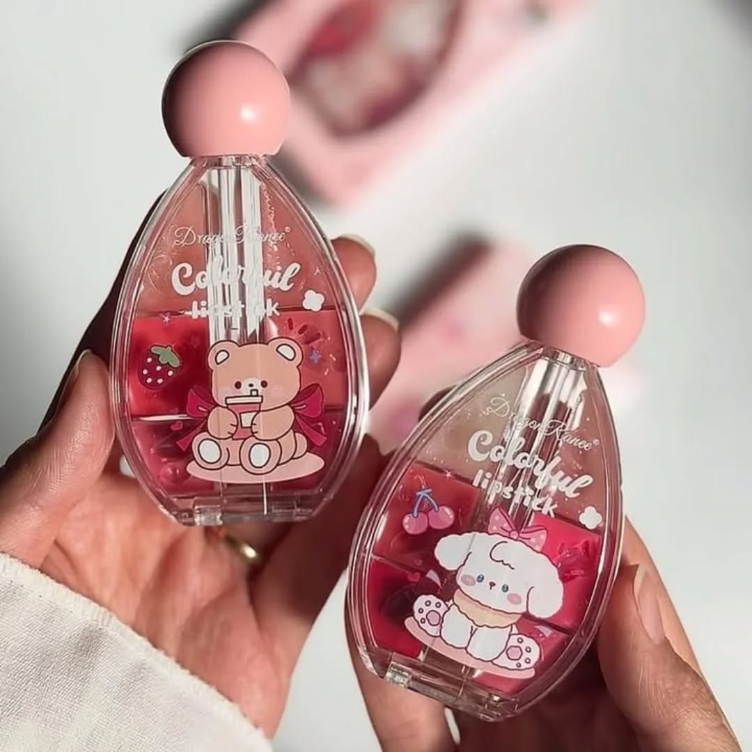 Looking for cute, compact, and colorful lipsticks? The Dragon Ranee Colorful Lipstick Palette is the perfect choice! This trending Korean-style lip palette includes 6 glossy and creamy shades in one adorable teardrop-shaped case – ideal for daily use, travel, or gifting.