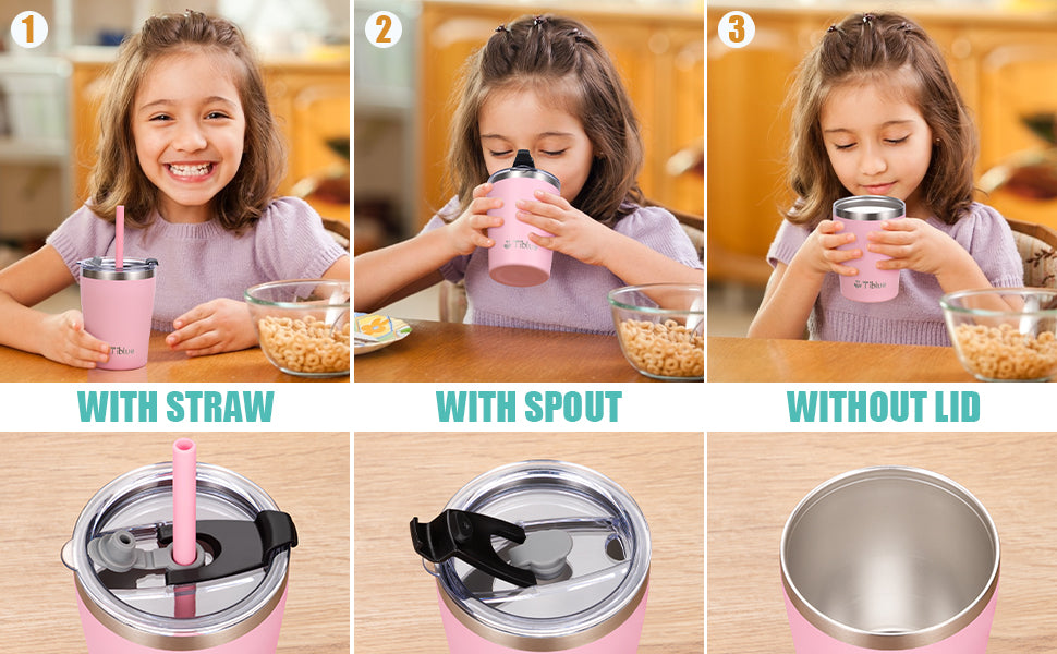 The Tiblue Baby Stainless Steel Straw Cup 8oz set, featuring blue and green colors, encourages toddlers to transition to real cups. Designed to promote oral muscle development, these BPA-free, shatterproof, and leakproof cups are ideal for introducing solid foods, fostering independence, and mimicking adult drinking behavior.
