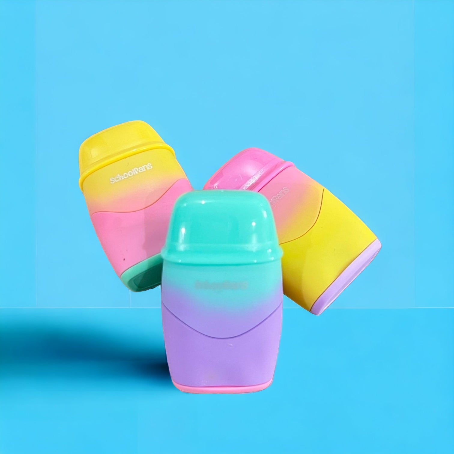 Elevate your stationery game with our Tie and Dye Double Hole Sharpener complete set with a built-in eraser. Make every sharpening a burst of color and convenience. #StationeryStyle