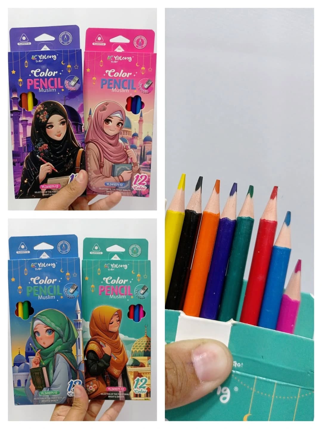 Yalong Muslim Color Pencils – 12 Shades with Erasers