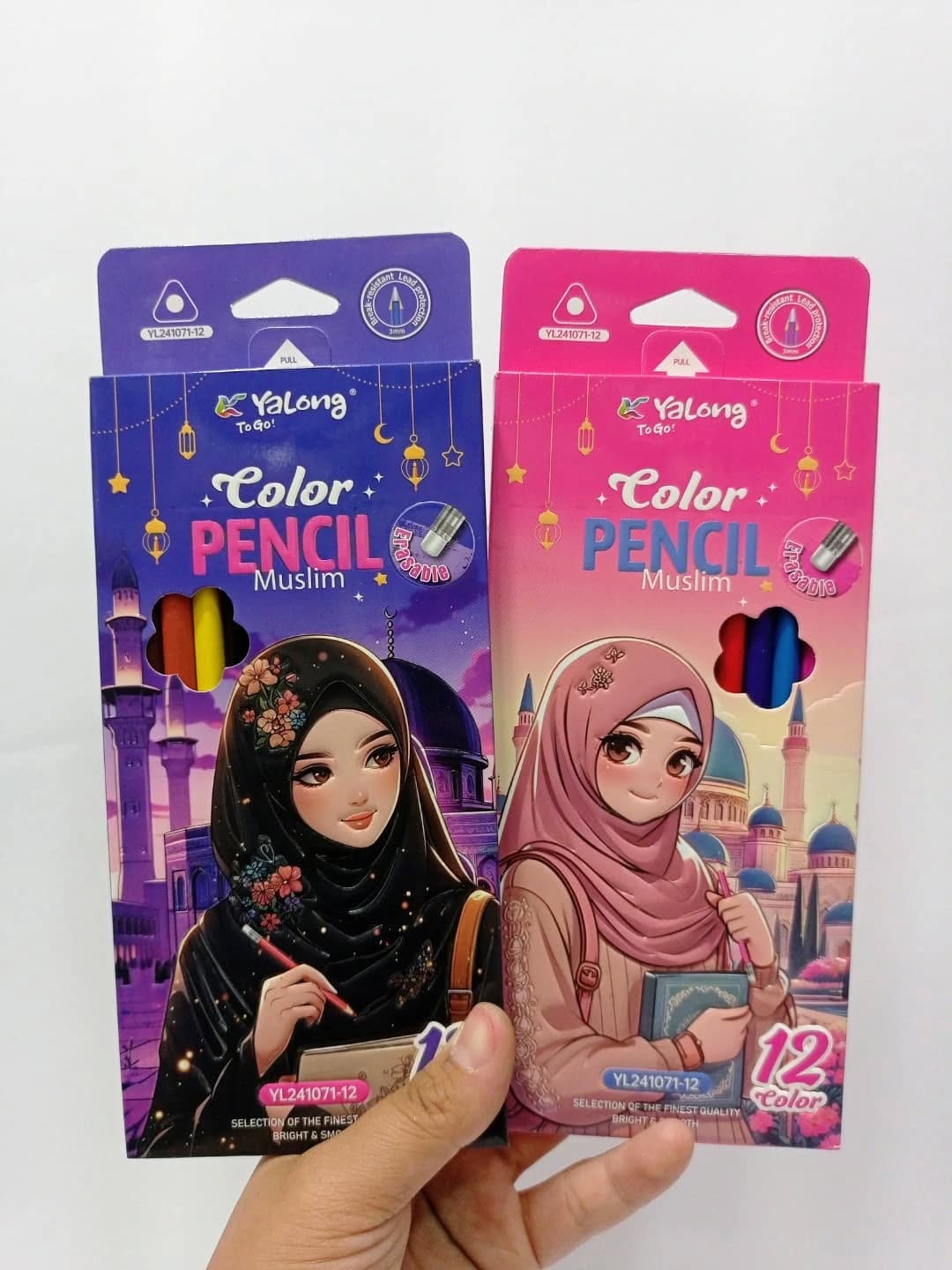Add color, creativity, and convenience to your drawing time with Yalong’s Muslim-themed Color Pencils. Each pencil is designed with a high-quality eraser on top, making it easy to fix mistakes while you create.
